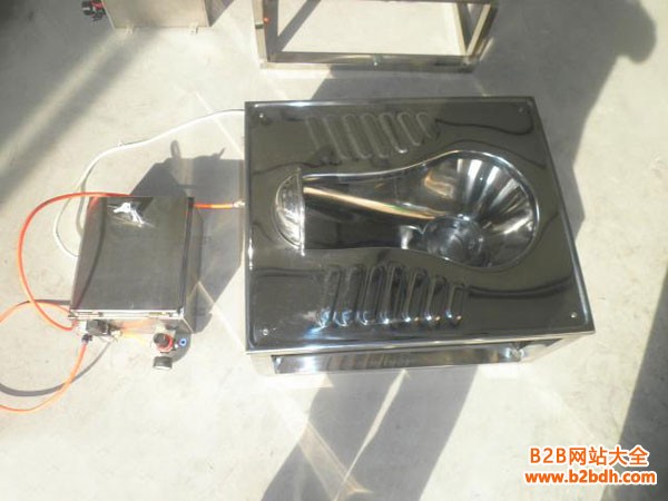 不锈钢蹲便器利用水增压器高压水冲洗,水增压器设有固定容量的水箱及进水阀、进气阀、出水阀,分别连接水源、气源、便器。工作时按动冲洗按钮,控制器分别关闭进水阀、打开进气阀、出水阀、增压器水箱的水被高压气体推出冲洗便器。污物通过便盆底部的自重防臭排污阀或气动排污阀收集到污物箱或化粪池。冲洗完哔进气阀、出水阀关闭、进水阀打开小水箱蓄满水,等待下一次冲洗。