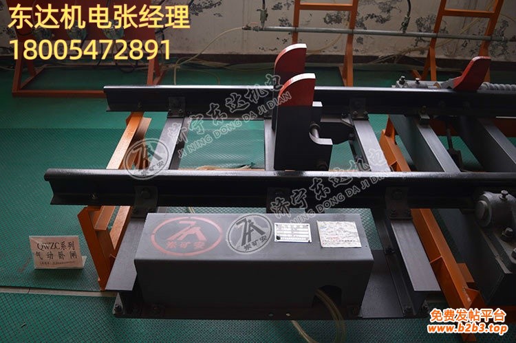 该产品是煤矿轨道运输中使用的安全保护装置,使用气体动力实现卧闸的关闭,依靠弹簧力自动开启,处于开启阻车状态。QWZC系列气动卧闸始终处于对一方向矿车开启阻车状态,阻挡此方向矿车,防止矿车自溜,当此方向矿车需要通过卧闸时,利用气动操作关闭卧闸放行矿车,当矿车通过后,卧闸能自动开启。对反方向运行矿车不用操作就可通过气动卧闸,通过后自动开启。