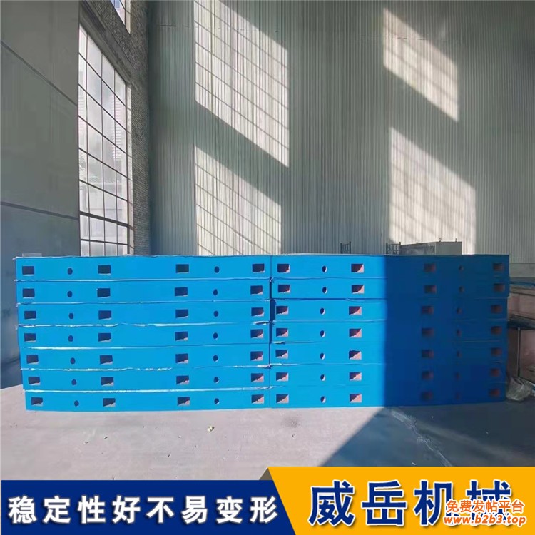 在使用 铸铁平台的时候确定铸铁平台辅助支点的位置很重要,对于尺寸大于1000mm X 1000mm的平板,由于承受过大的载荷,可能发生倾斜翻倒,除了主支承外还需另设两个或多个辅助支承。辅助支承的设置有助于增加平板刚性,防止平板倾覆.防止平板变形。辅助支承的个数,应视平板尺寸大小、使用情况需要而定.但平板检定及铸铁平板使用时的辅助支承位置应与设计制造时相同,这__了平板支承的合理布局、使用情况与设计制造情况一致。