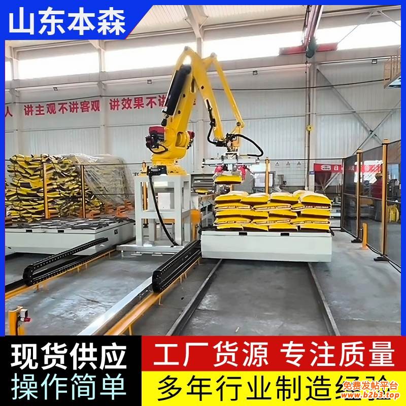 2.灵活适应:支持多规格菌肥袋(20-50kg)及不同垛型(如“井”字形、“品”字形)切换,通过离线编程软件可快速调整参数,无需停机改造。
