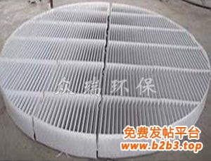 框板式水平除雾器由两层平行除雾器及三层冲洗水组成。除雾器为粗除雾,二级除雾器为精除雾。 除雾器标准模块由20片叶片组成,二级除雾器标准模块由26片叶片组成。叶片之间通过定位杆将其固定。然后在和叶片焊接到一起,定位杆不会脱落,同时,也加大了除雾器的承载能力 。喷嘴、管道、管卡等。电除雾器清洗水管、喷嘴及管卡由增强聚丙烯制作。冲洗水布置形式为 除雾器上下级和二级除雾器下游。除雾器冲洗系统设计能充掉污垢,使除雾器避免结垢以长期无故障运行。冲洗系统在除雾器运行时候,根据一个设定的可变程序,以设定的水量自动运行,既可单级运行,也可在几级之间互相切换。